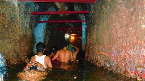 The temple is situated under the Manichola hill range found in a 3oo m deep tunnel. The place at main deity can accommodate only eight people at a time, and the rest have to wait in water for their turn.