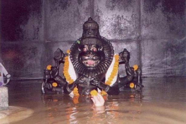 Lord Nrusimha (Lord Vishnu’s fourth incarnation) is one god, whose temples always give some adventurous and amazing experience. One such temple of the Lord is Narasimha Jharni/ Bidar Nrusmiha Swamy Temple. located at Bidar, Karnataka, around 4 km away from the Bidar city. This temple visit will be an unforgettable experience for the devotees. The specialty here is that one has to walk through a cave and move some metres in water (usually to 4-5 feet) till the tunnel end, to have the darshan of the self-manifested/swayambhu main deity. One can see two main deities, Lord Nrusimha and Shiva Linga, at the end of the tunnel. With bats all around inside the cave, hanging to the top and moving around. The stunning fact is that no devotee is harmed by bats, till date. The waters, which the devotees should have to pass through, are also said to be rich in sulfur and have healing properties.