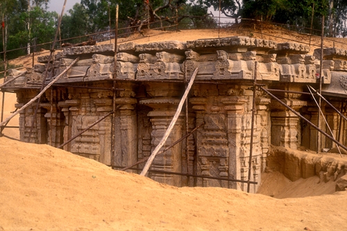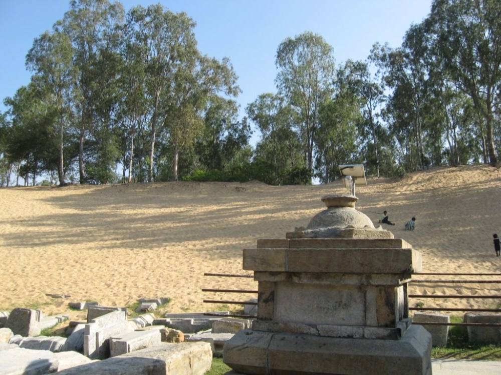 Talakad was ruled by Gangas, Cholas, Hoyasalas and Vijayanagara empires. Its current-day’s situation is said to be the result of curse by Alamelamma, the wife of a defeated viceroy of Vijayanagara Empire, on the then Mysore Maharaja Wadayar, during the 16th century. Alamelamma use to send her diamond jewelry to Goddess Ranganayaki of Srirangapatnam, regularly. But, on one Friday, the widowed Alamelamma did not send her jewelry. With this, angry Wadayar was said to have ordered his soldiers to get the jewelry from her, forcefully. Then, Alamelamma escaped to Talakad, a vibrant city nearby Mysore, and worried about captivation, she jumped into Cauvery River (along with that jewllery) near Malangi, uttering the curse: “Talakadu managali, Malangi madwagali, Mysooru arasarige makkalu aagadirali” which means: “May Malangi turn into an unfathomed whirlpool (as she doesn’t want anyone to track these jewels) and Talakad turn into a barren expanse of sand (to avoid soldiers from approaching her) and the Rajas of Wadiyar not have their male heir (for his deed against her)”.
